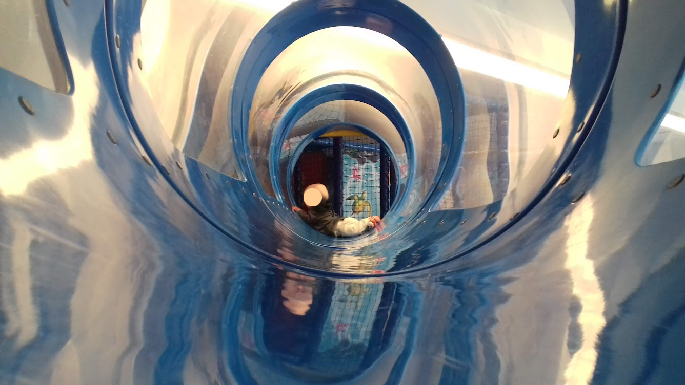 Zanim jednak docieramy do pawilonów obok McDonald'sa, nasze buty są już całkowicie przemoczone. Na szczęście w środku nie ma tłumu, a obowiązek zdjęcia butów działa na naszą korzyść – z bagażu wyciągamy suche skarpetki, szybko się przebieramy i od razu robi się wygodniej. Zamawiamy gorącą herbatę, powoli rozgrzewamy się i wreszcie możemy odetchnąć po chłodnym, mokrym poranku. W szumie rozmów i zabawy dzieci zaczyna się pojawiać spokój – deszcz zostaje na zewnątrz, a my cieszymy się chwilą wytchnienia.